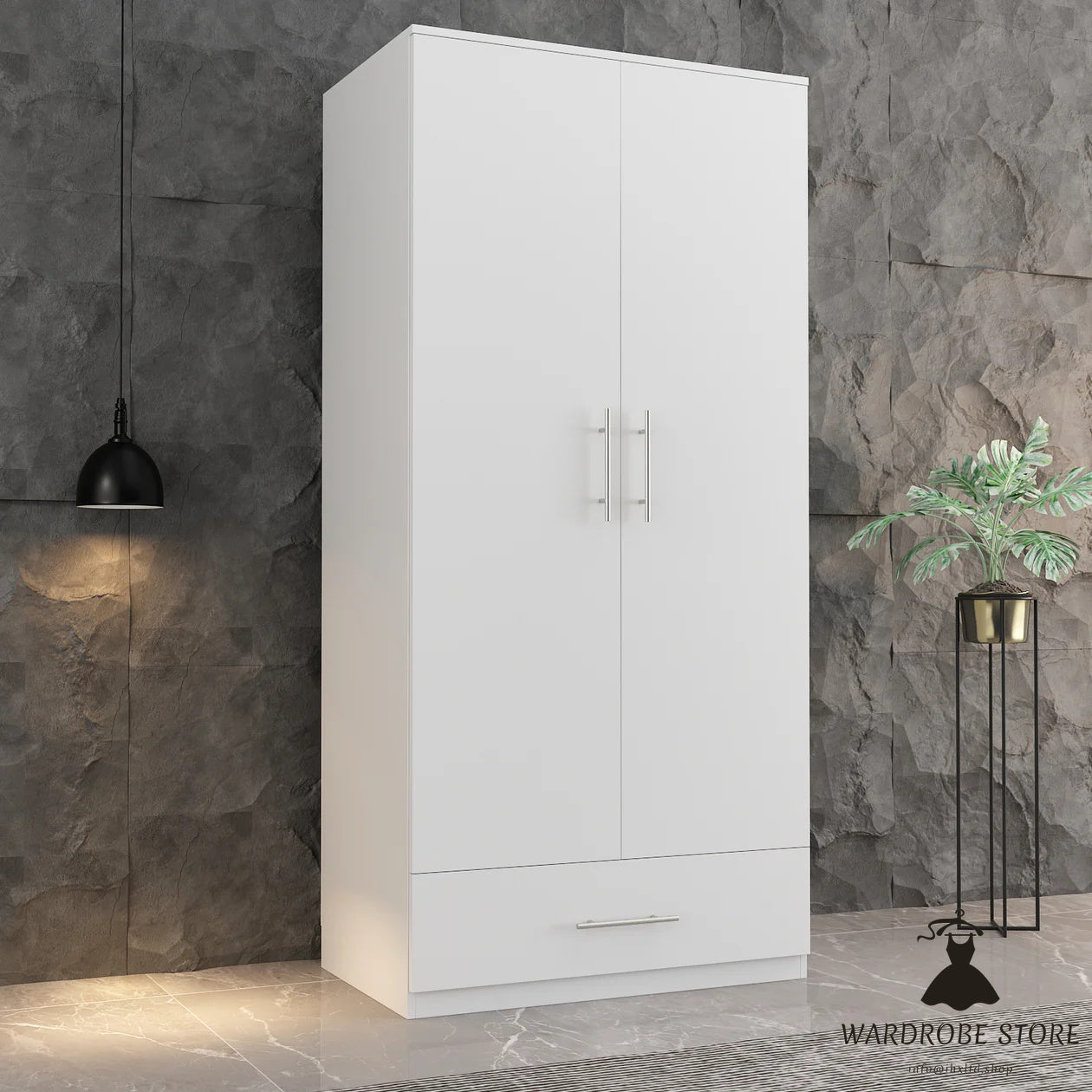 2-Door Wardrobe Cabinet with 1 Drawer Armoire for Bedroom Storage