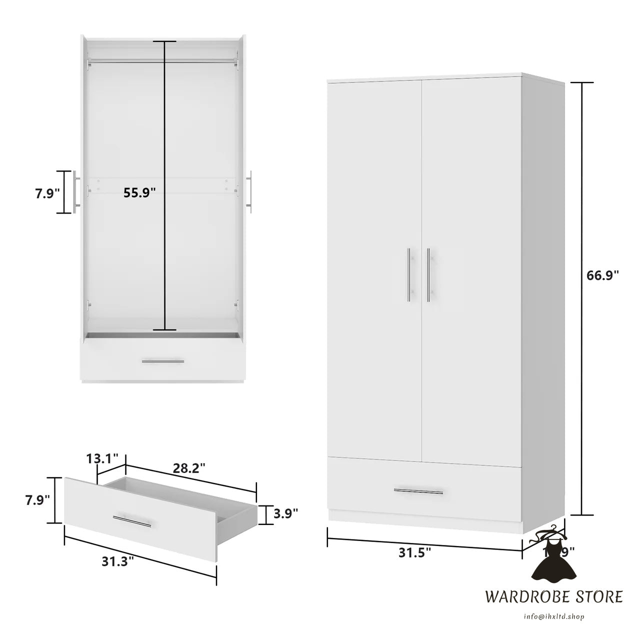 - [Large Storage Capacity] Enlarged hanging area, you can easily store your coats dresses and other larger clothes. 1 drawer storage. SIZE:18.9 "D x 31.5 "W x 66.9 "H. Weight: 87.74 LBS.