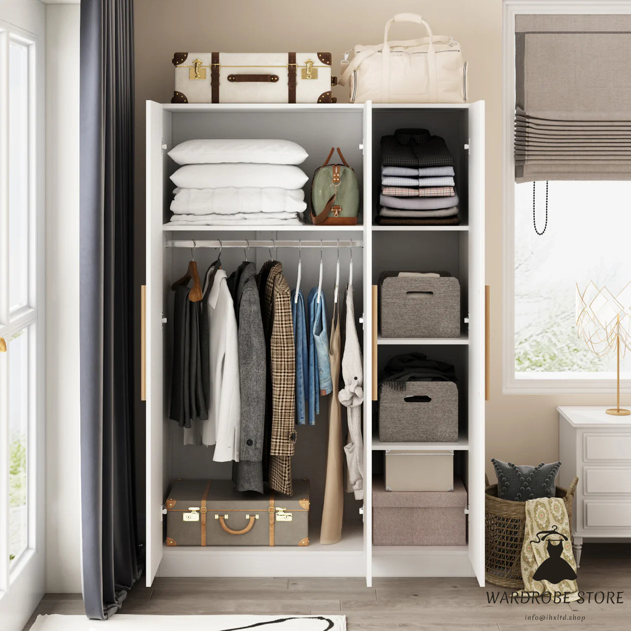 2 Sectional wardrobe includes 6 fixed shelves, and 1 aluminum hanging rod.