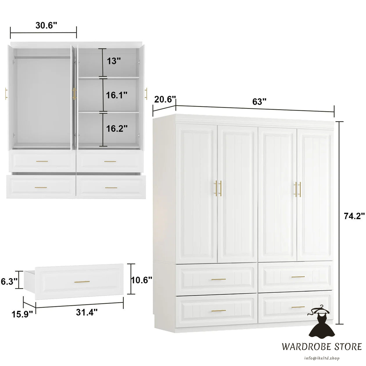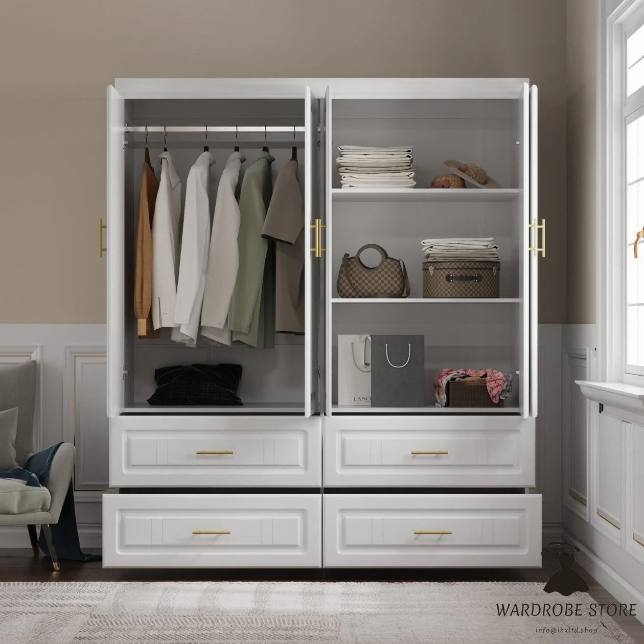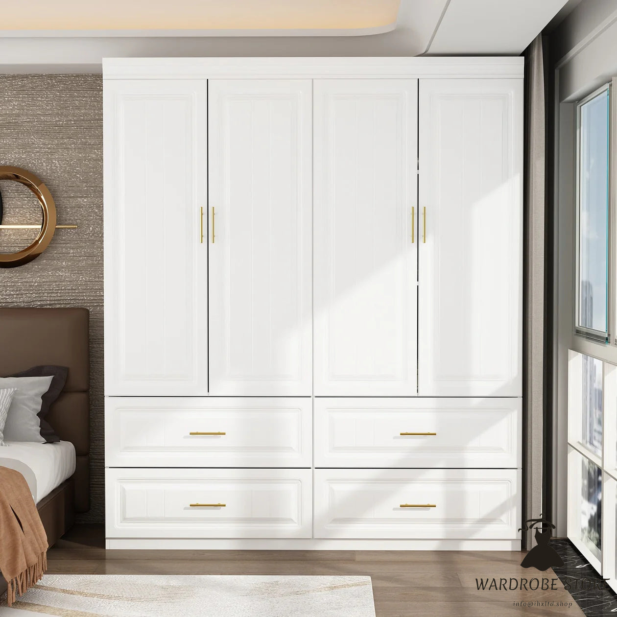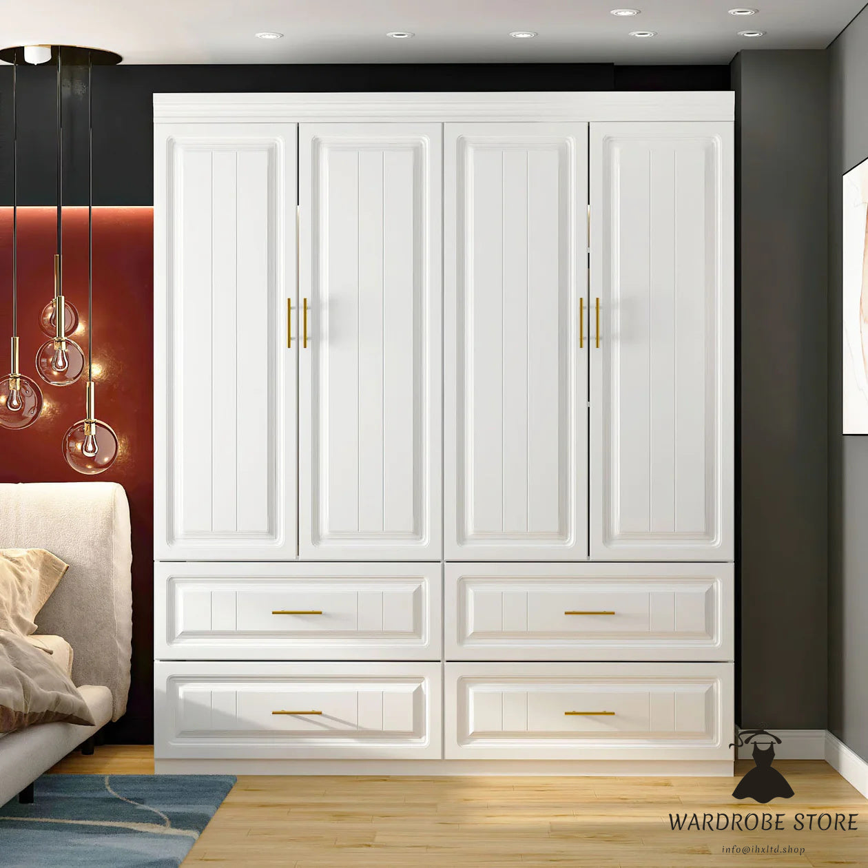 Family Cabinet Wardrobe Bedroom Armoire Home Closet 4 Doors and Drawers