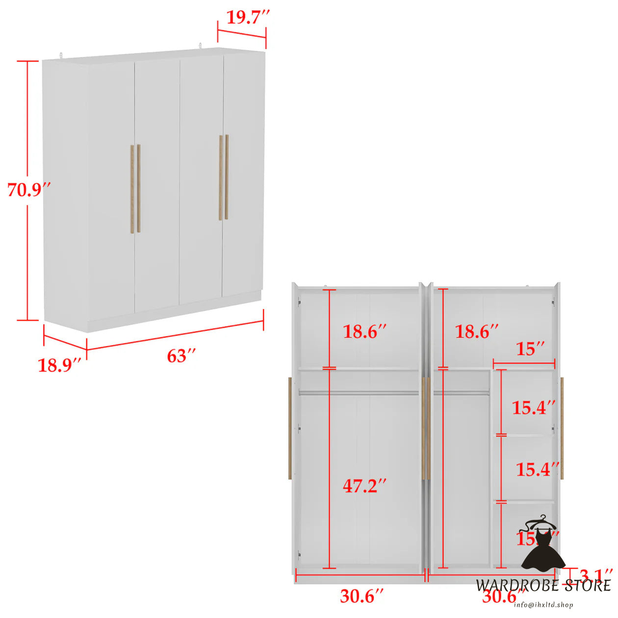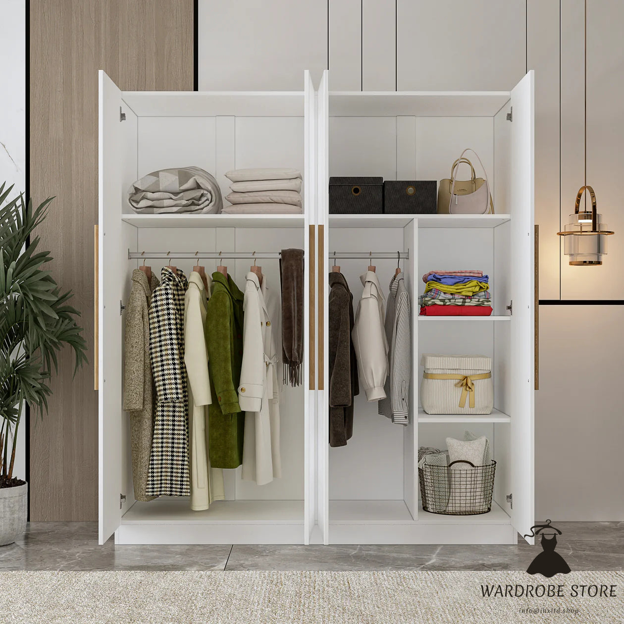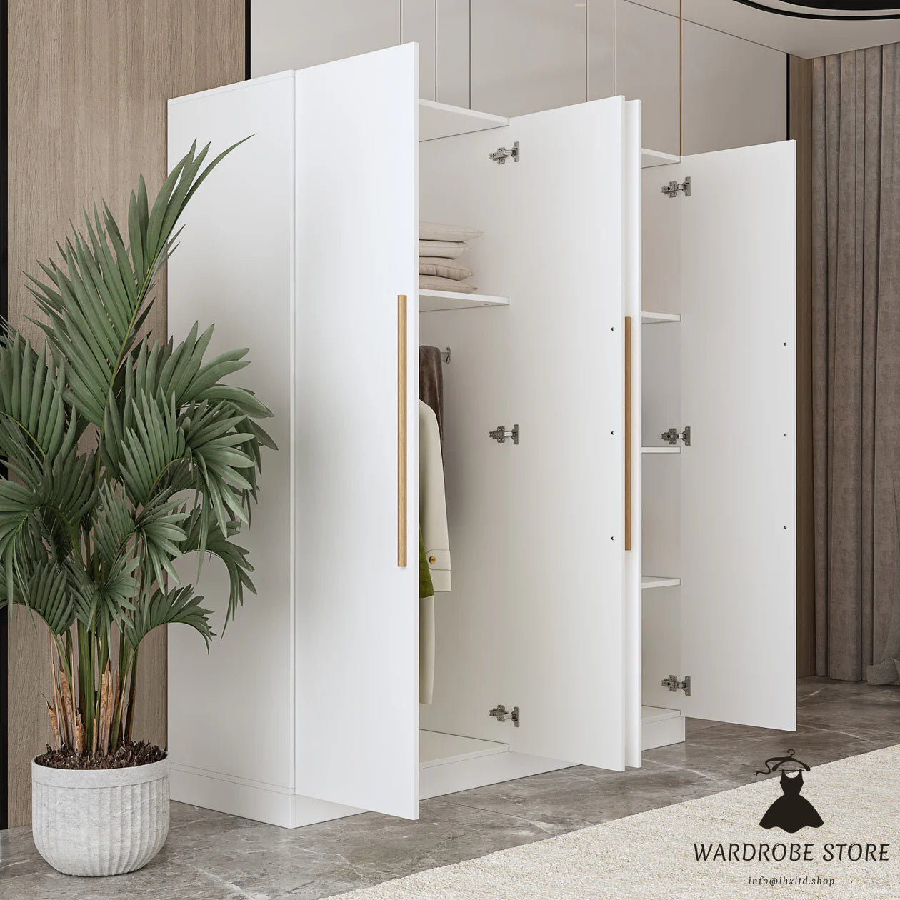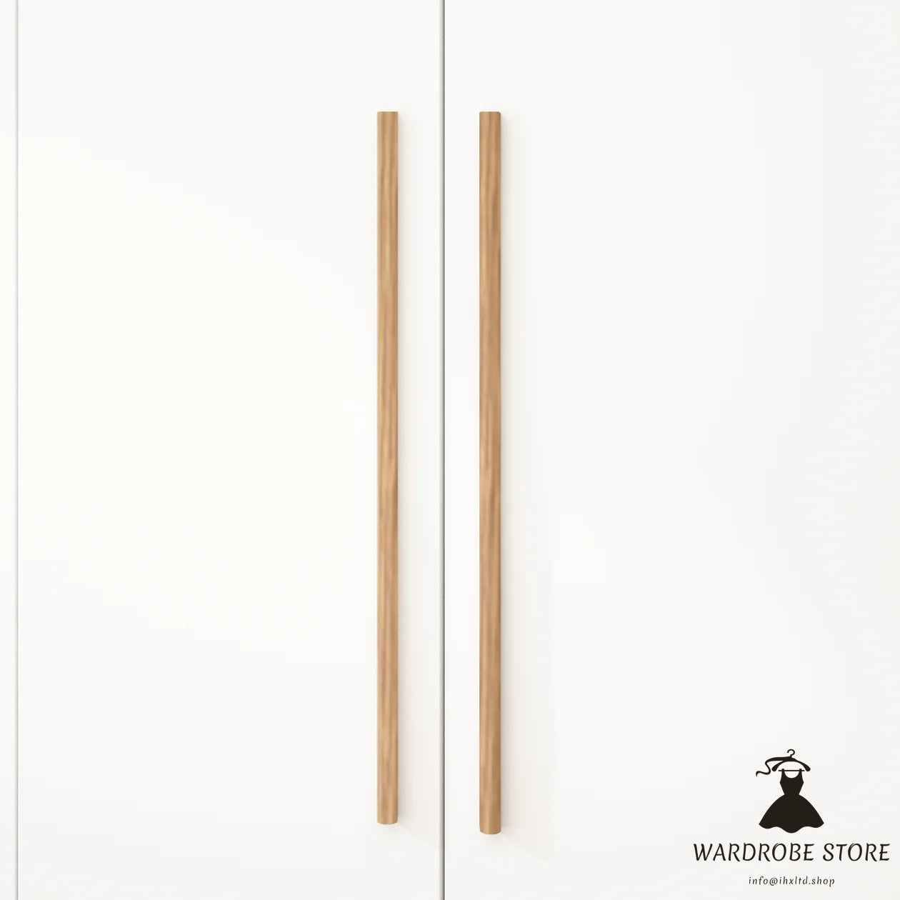 This wood wardrobe closet is minimalist in design, it combines whiteboard with brown handles to show elegant charm. This wardrobe matches well with many different house decors.