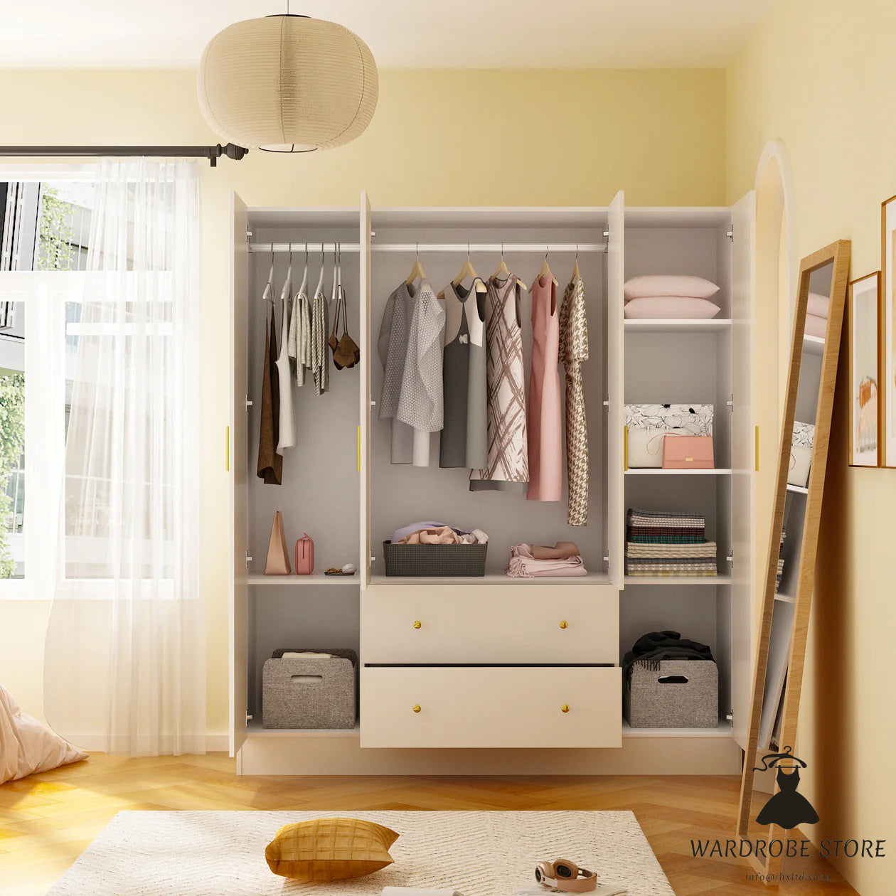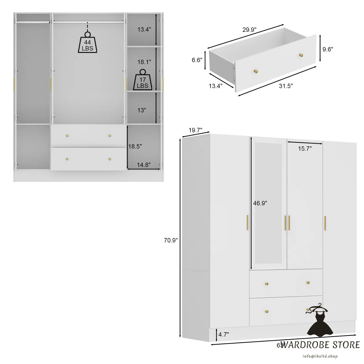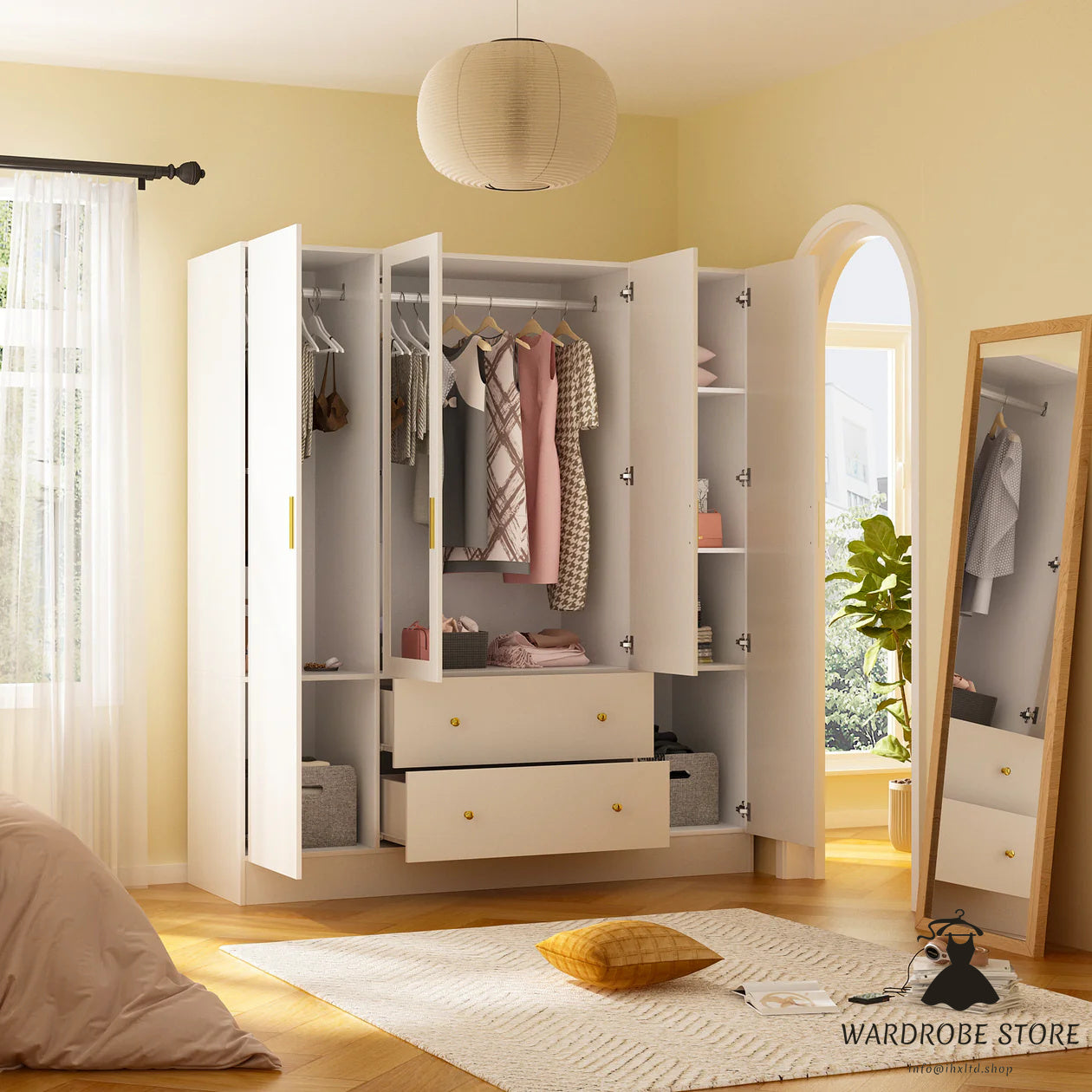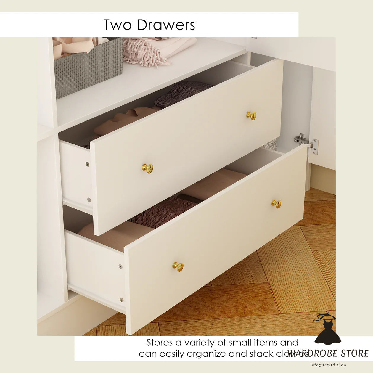 - [Large Storage Capacity] This wardrobe features 2 large drawers 2 hanging areas and 4 shelves which are sufficient for family clothing storage.